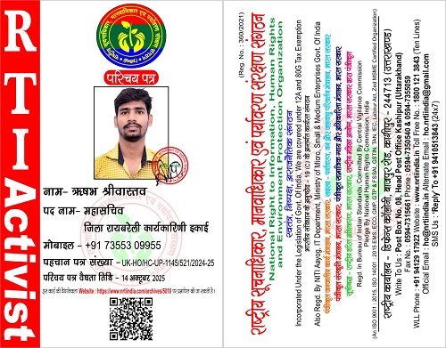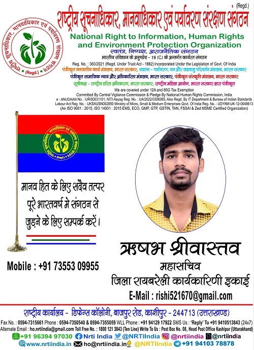 "राष्ट्रीय सूचनाधिकार, मानवाधिकार एवं पर्यावरण संरक्षण संगठन"* से जुड़े रहने के लिए आप संगठन के सोशल मीडिया साइटो पर भी जा सकते है