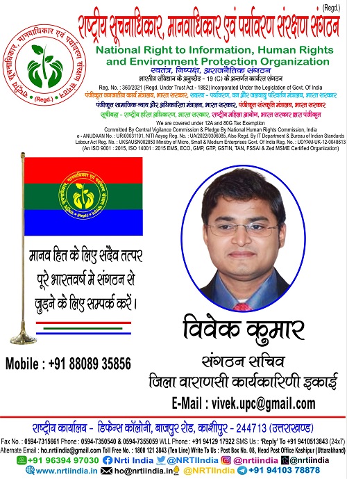 विवेक कुमार January 31, 2025 / By NRTI India विवेक कुमार संगठन सचिव जिला वाराणसी कार्यकारिणी इकाई मोबाइल : +91 88089 35856 ई – मेल : vivek.upc@gmail.com Please follow and like us: