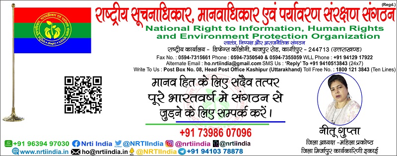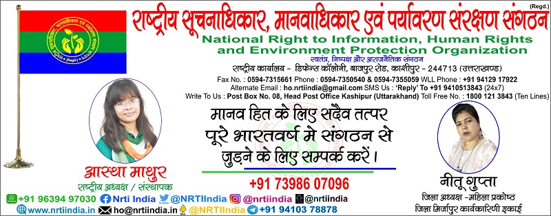 "राष्ट्रीय सूचनाधिकार, मानवाधिकार एवं पर्यावरण संरक्षण संगठन"* से जुड़े रहने के लिए आप संगठन के सोशल मीडिया साइटो पर भी जा सकते है