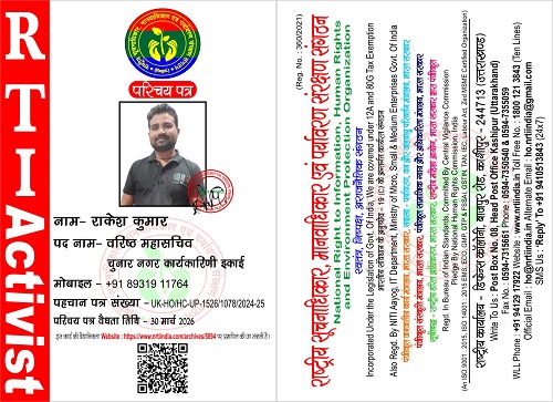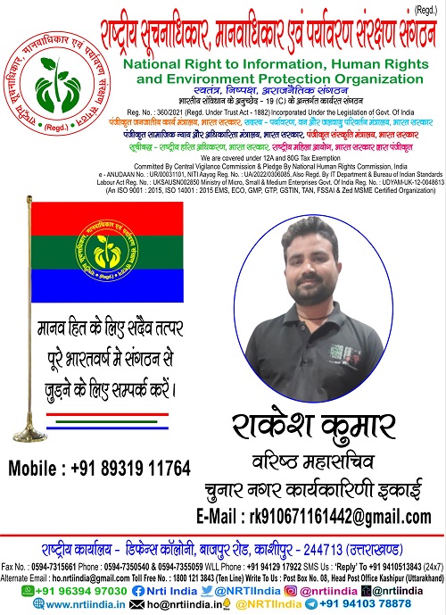 राकेश कुमार March 31, 2025 / By NRTI India राकेश कुमार वरिष्ठ महासचिव चुनार नगर कार्यकारिणी इकाई मोबाइल : +91 89319 11764 ई – मेल : rk910671161442@gmail.com