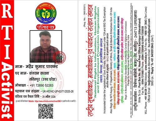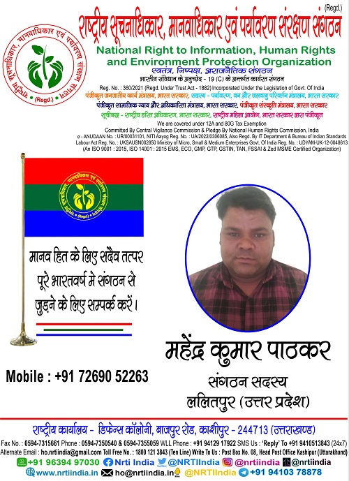 महेंद्र कुमार पाठकर April 26, 2025 / By NRTI India महेंद्र कुमार पाठकर संगठन सदस्य ललितपुर (उत्तर प्रदेश) मोबाइल : +91 72690 52263