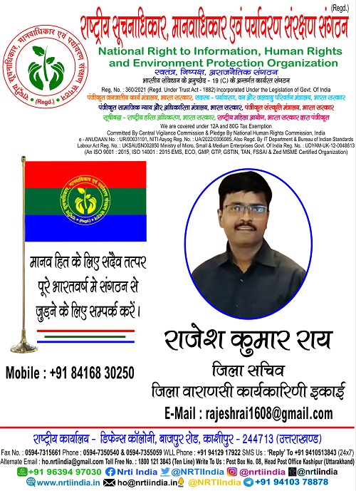 "राष्ट्रीय सूचनाधिकार, मानवाधिकार एवं पर्यावरण संरक्षण संगठन"* से जुड़े रहने के लिए आप संगठन के सोशल मीडिया साइटो पर भी जा सकते है