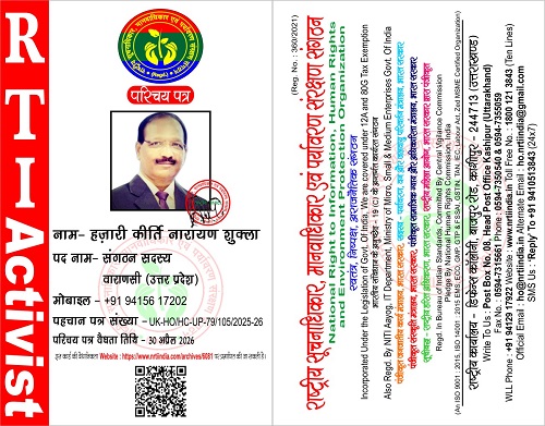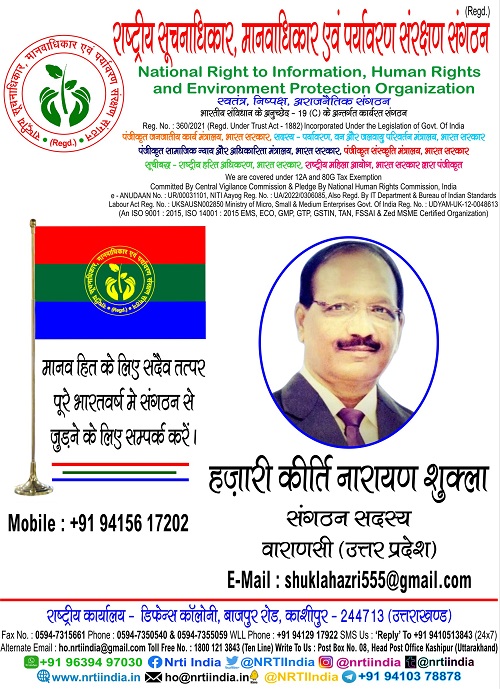 हज़ारी कीर्ति नारायण शुक्ला May 9, 2025 / By NRTI India हज़ारी कीर्ति नारायण शुक्ला संगठन सदस्य वाराणसी (उत्तर प्रदेश) मोबाइल : +91 94156 17202 ई – मेल : shuklahazri555@gmail.com Please follow and like us: