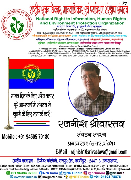 "राष्ट्रीय सूचनाधिकार, मानवाधिकार एवं पर्यावरण संरक्षण संगठन"* से जुड़े रहने के लिए आप संगठन के सोशल मीडिया साइटो पर भी जा सकते है
