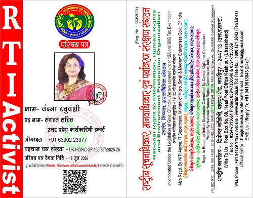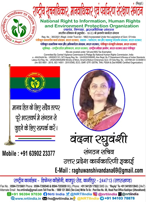 वंदना रघुवंशी June 23, 2025 / By NRTI India वंदना रघुवंशी संगठन सचिव उत्तर प्रदेश कार्यकारिणी इकाई मोबाइल : +91 63902 23377 ई – मेल : raghuwanshivandana69@gmail.com