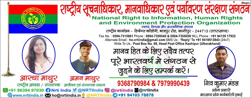 "राष्ट्रीय सूचनाधिकार, मानवाधिकार एवं पर्यावरण संरक्षण संगठन"* से जुड़े रहने के लिए आप संगठन के सोशल मीडिया साइटो पर भी जा सकते है