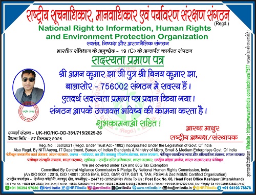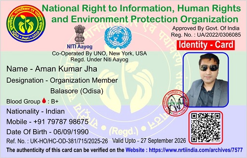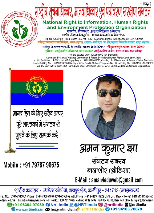 अमन कुमार झा October 25, 2025 / By NRTI India अमन कुमार झा संगठन सदस्य बालासोर (ओडिशा) मोबाइल : +91 79787 98675 ई – मेल : aman4eduweb@gmail.com