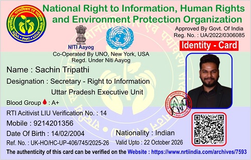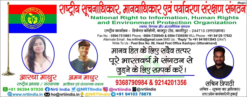 "राष्ट्रीय सूचनाधिकार, मानवाधिकार एवं पर्यावरण संरक्षण संगठन"* से जुड़े रहने के लिए आप संगठन के सोशल मीडिया साइटो पर भी जा सकते है