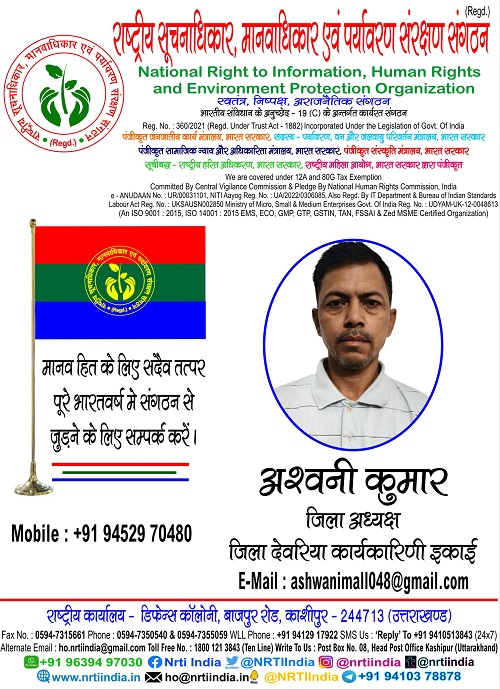 "राष्ट्रीय सूचनाधिकार, मानवाधिकार एवं पर्यावरण संरक्षण संगठन"* से जुड़े रहने के लिए आप संगठन के सोशल मीडिया साइटो पर भी जा सकते है