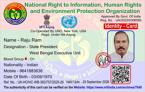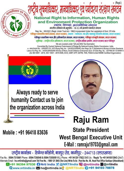 Raju Ram November 8, 2025 / By NRTI India Raju Ram State President West Bengal Executive Unit Mobile : +91 96418 83636 E-Mail : ramraju19703@gmail.com Please follow and like us: