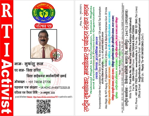 "राष्ट्रीय सूचनाधिकार, मानवाधिकार एवं पर्यावरण संरक्षण संगठन"* से जुड़े रहने के लिए आप संगठन के सोशल मीडिया साइटो पर भी जा सकते है