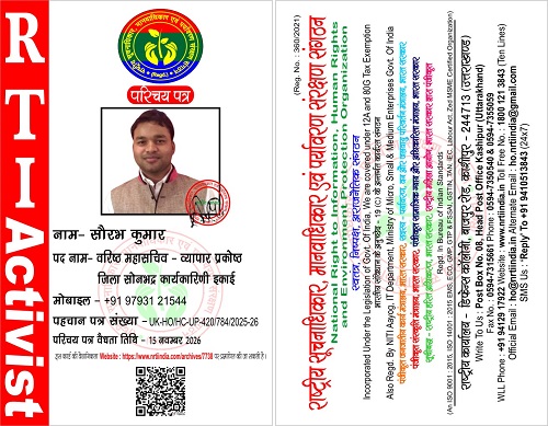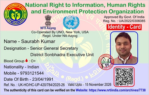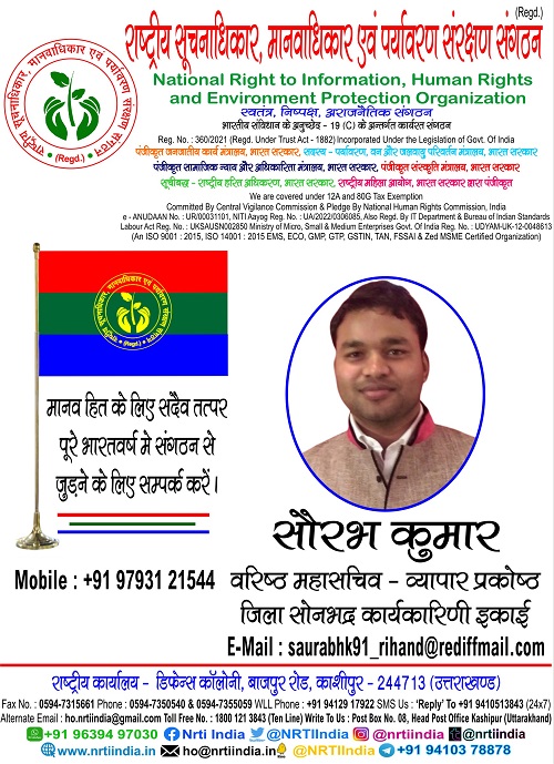 सौरभ कुमार November 16, 2025 / By NRTI India सौरभ कुमार वरिष्ठ महासचिव जिला सोनभद्र कार्यकारिणी इकाई मोबाइल : +91 97931 21544 ई – मेल : saurabhk91_rihand@rediffmail.com