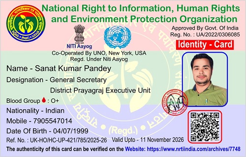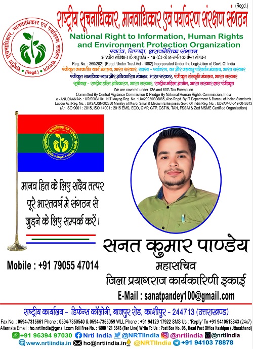 सनत कुमार पाण्डेय November 16, 2025 / By NRTI India सनत कुमार पाण्डेय महासचिव जिला प्रयागराज कार्यकारिणी इकाई मोबाइल : +91 79055 47014 ई – मेल : sanatpandey100@gmail.com Please follow and like us: