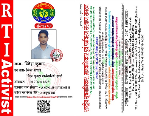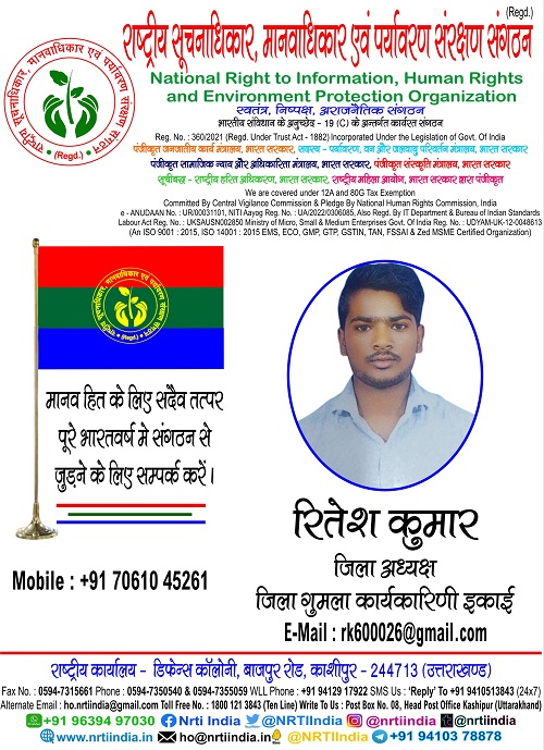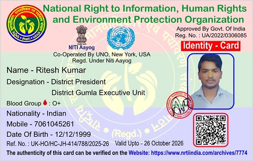 रितेश कुमार November 17, 2025 / By NRTI India रितेश कुमार जिला अध्यक्ष जिला गुमला कार्यकारिणी इकाई मोबाइल : +91 70610 45261 ई – मेल : rk600026@gmail.com Please follow and like us: