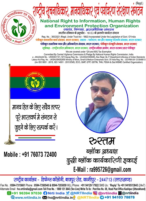 "राष्ट्रीय सूचनाधिकार, मानवाधिकार एवं पर्यावरण संरक्षण संगठन"* से जुड़े रहने के लिए आप संगठन के सोशल मीडिया साइटो पर भी जा सकते है