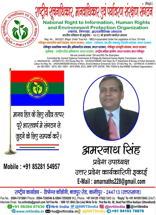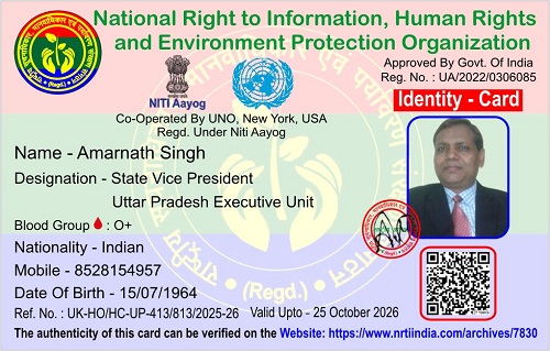 अमरनाथ सिंह November 26, 2025 / By NRTI India अमरनाथ सिंह प्रदेश उपाध्यक्ष उत्तर प्रदेश कार्यकारिणी इकाई मोबाइल : +91 85281 54957 ई – मेल : amarnaths228@gmail.com