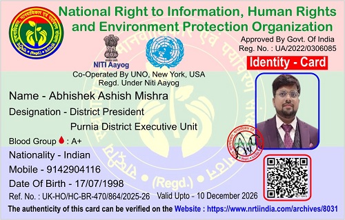 "राष्ट्रीय सूचनाधिकार, मानवाधिकार एवं पर्यावरण संरक्षण संगठन"* से जुड़े रहने के लिए आप संगठन के सोशल मीडिया साइटो पर भी जा सकते है