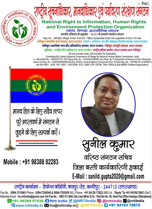 "राष्ट्रीय सूचनाधिकार, मानवाधिकार एवं पर्यावरण संरक्षण संगठन"* से जुड़े रहने के लिए आप संगठन के सोशल मीडिया साइटो पर भी जा सकते है