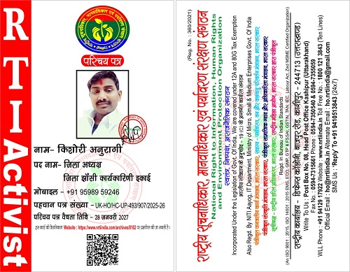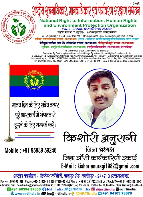 किशोरी अनुरागी January 4, 2026 / By NRTI India किशोरी अनुरागी जिला अध्यक्ष जिला झाँसी कार्यकारिणी इकाई मोबाइल : +91 95989 59246 ई – मेल : kishorianuragi1982@gmail.com