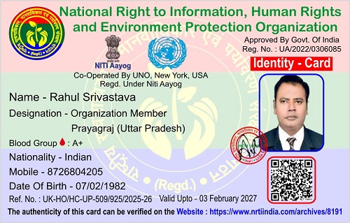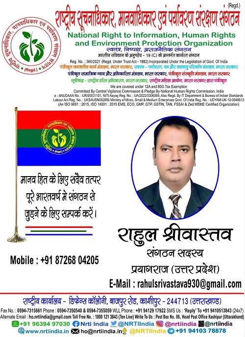 राहुल श्रीवास्तव January 20, 2026 / By NRTI India राहुल श्रीवास्तव संगठन सदस्य प्रयागराज (उत्तर प्रदेश) मोबाइल : +91 87268 04205 ई – मेल : rahulsrivastava930@gmail.com Please follow and like us: