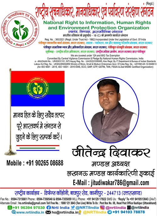 जीतेन्द्र दिवाकर January 31, 2026 / By NRTI India जीतेन्द्र दिवाकर मण्डल अध्यक्ष लखनऊ मण्डल कार्यकारिणी इकाई मोबाइल : +91 90265 08688 ई – मेल : jitudiwakar786@gmail.com Please follow and like us: