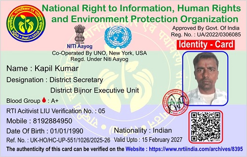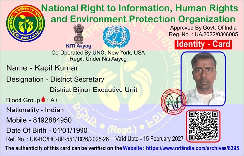 कपिल कुमार February 17, 2026 / By NRTI India कपिल कुमार जिला सचिव जिला बिजनौर कार्यकारिणी इकाई मोबाइल : +91 81928 84950 ई – मेल : kapilsaini1832@gmail.com