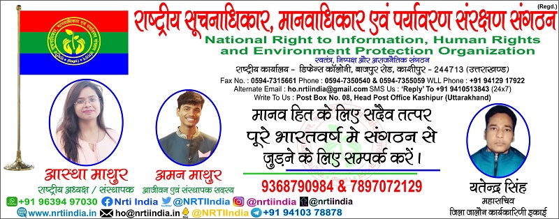 "राष्ट्रीय सूचनाधिकार, मानवाधिकार एवं पर्यावरण संरक्षण संगठन"* से जुड़े रहने के लिए आप संगठन के सोशल मीडिया साइटो पर भी जा सकते है